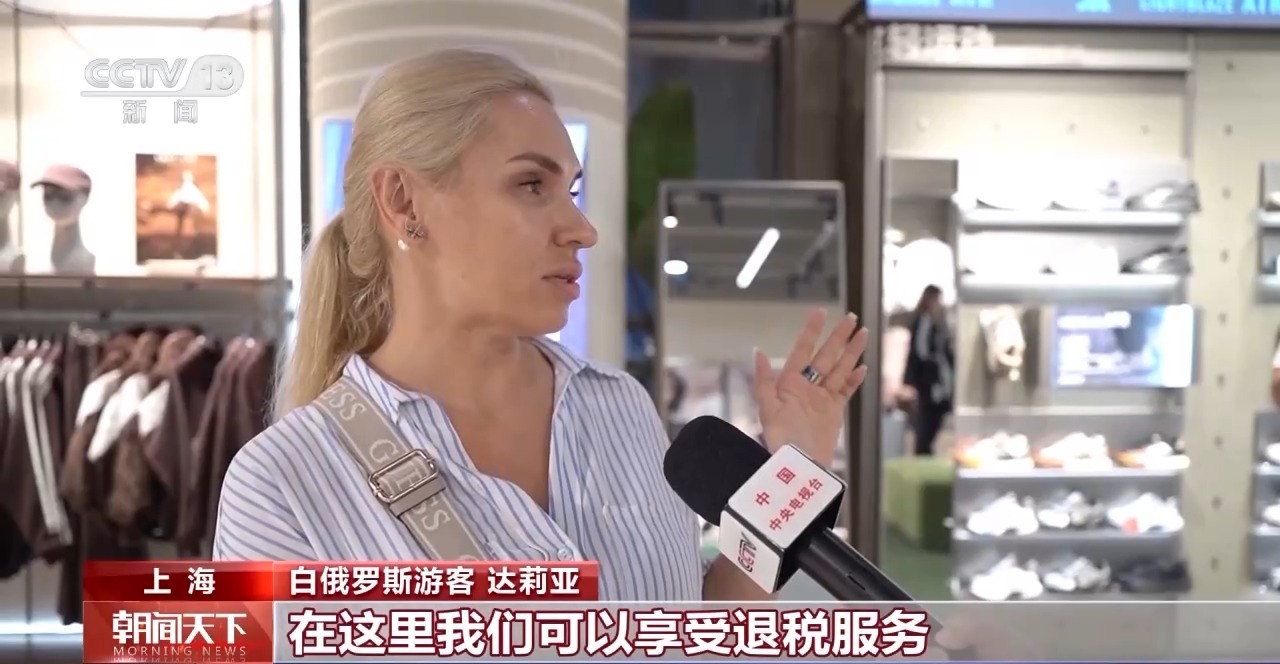 白俄罗斯游客 达莉亚:这个店铺的商品很特别,在这里我们可以享受退税服务,还有很丰富的商品选择。
