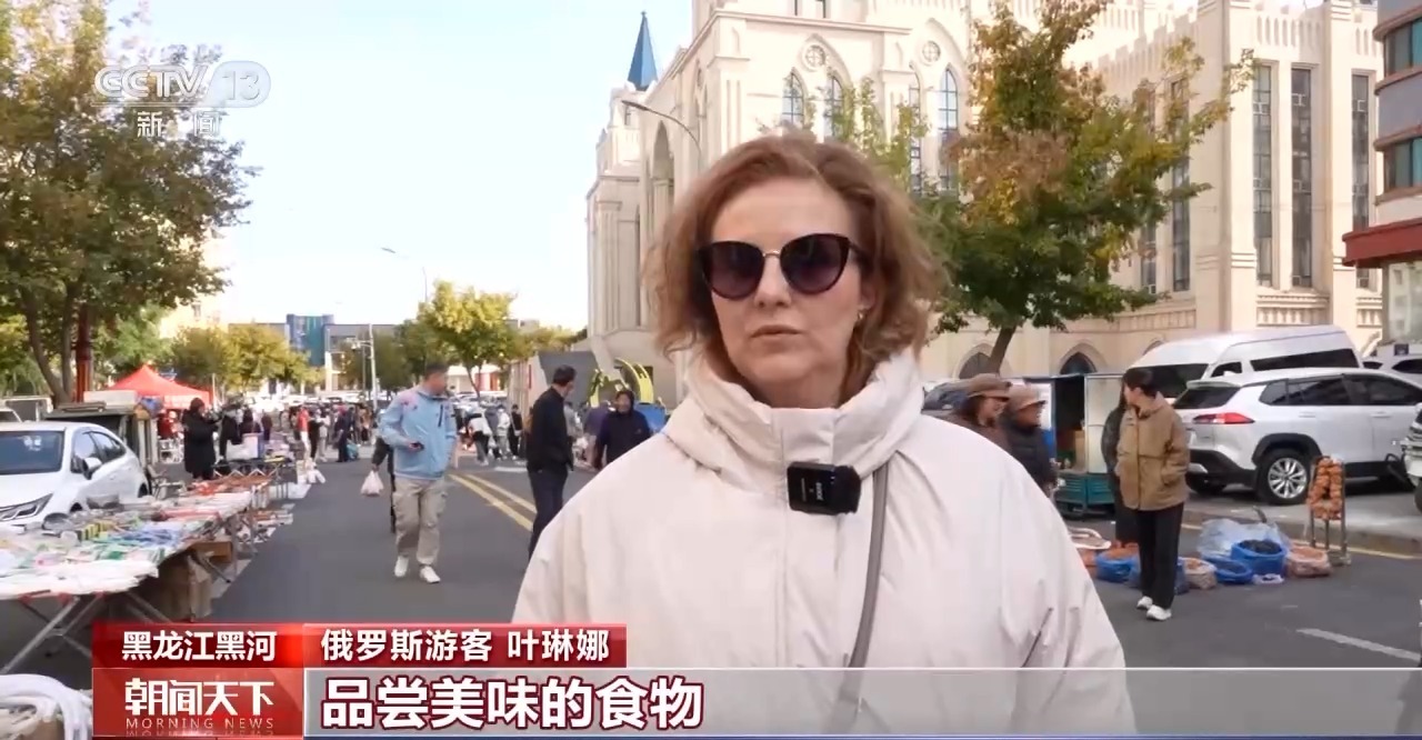 国庆假期前不久,中国对俄罗斯持普通护照人员试行为期一年的免签政策,黑河这个中俄边境城市因为这项政策利好,迎来入境消费新热潮。从口岸走进城区,早市的烟火气吸引了大量外国游客。不到1500米的早市上容纳了1600多个摊位。果蔬摊、小吃铺摊位前都挤满了顾客,放眼望去,金发碧眼的俄罗斯游客随处可见。