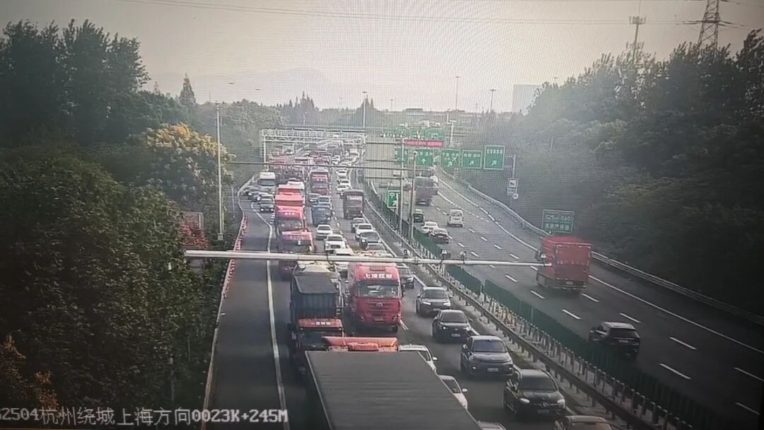 3、G60杭金衢高速杭向因大流量23K后方有序缓行。