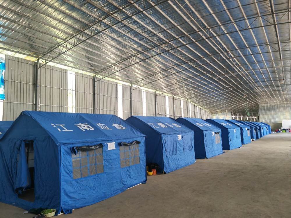 江南区沙井街道党群服务中心主任卢东兴介绍,接到洪水预警后,街道党工委马上准备救灾物资并布设安置点,划分休息区、洗漱区、用餐区等功能区,保障群众生活。“目前共搭建27顶帐篷,安置群众21户64人,提供矿泉水、泡面等物资,安排人员值守,确保群众安心。”