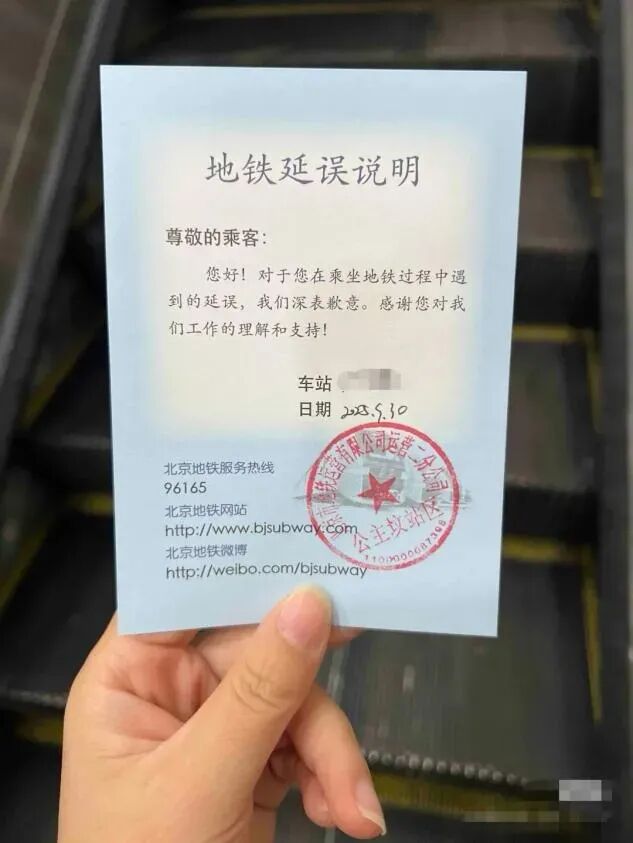 10月9日,经视直播记者联系到该网友进一步确认,其在延误发生后咨询地铁工作人员,顺利取得纸质延误证明,所在单位经核验后认可该情况属非个人原因导致的迟到。