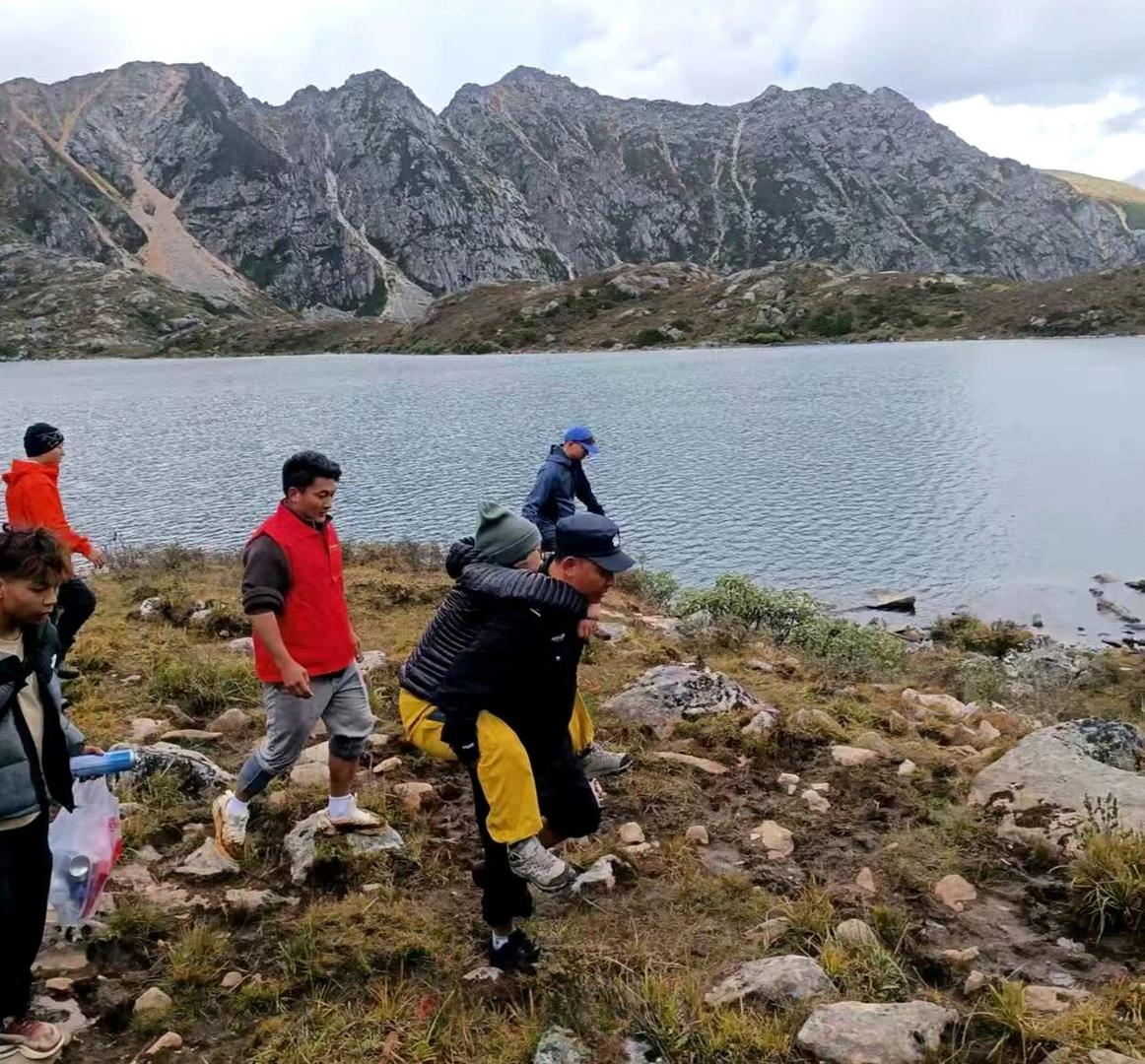 0月2日,在海拔4700米的四川甘孜丹巴县丹东镇的卓雍措湖垭口附近,一名女游客出现高反、失温等情况,路过游客和当地警方、镇政府工作人员、医务人员接力救援,成功将女游客运送下山送至医院。