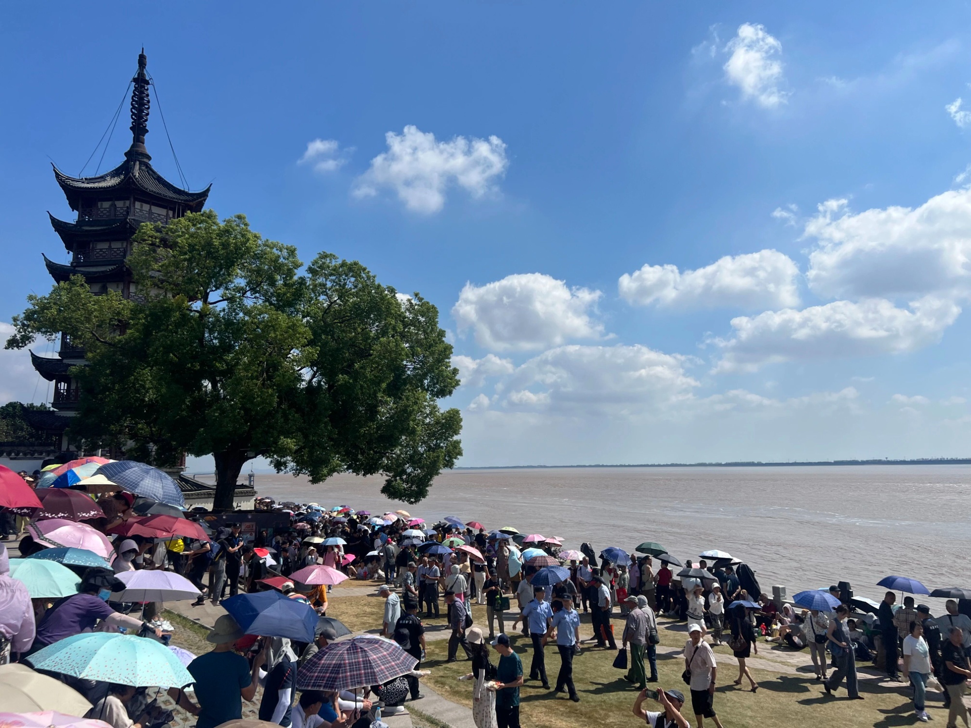 海宁盐官观潮胜地公园人头攒动(央广网发海宁市委宣传部供图)