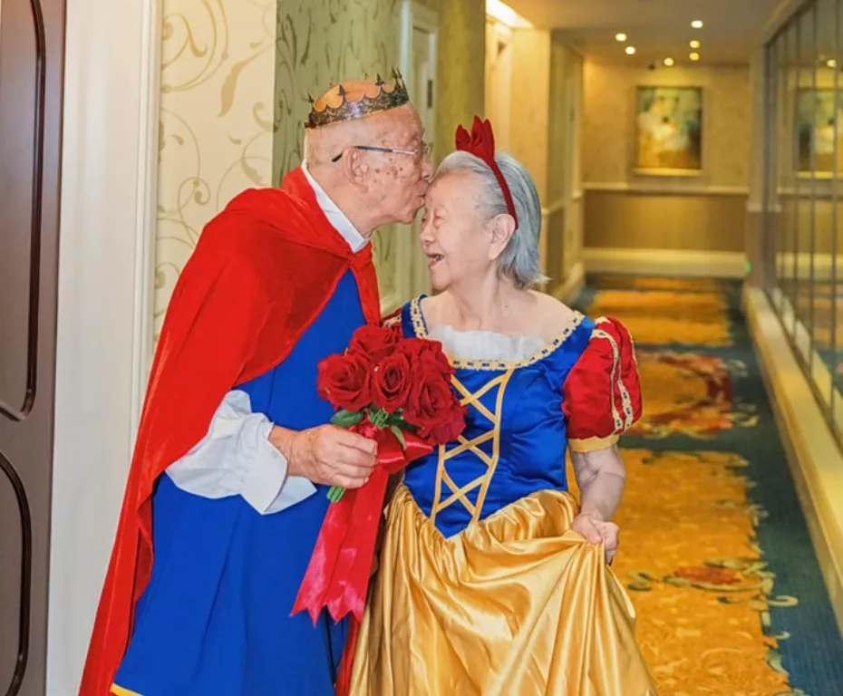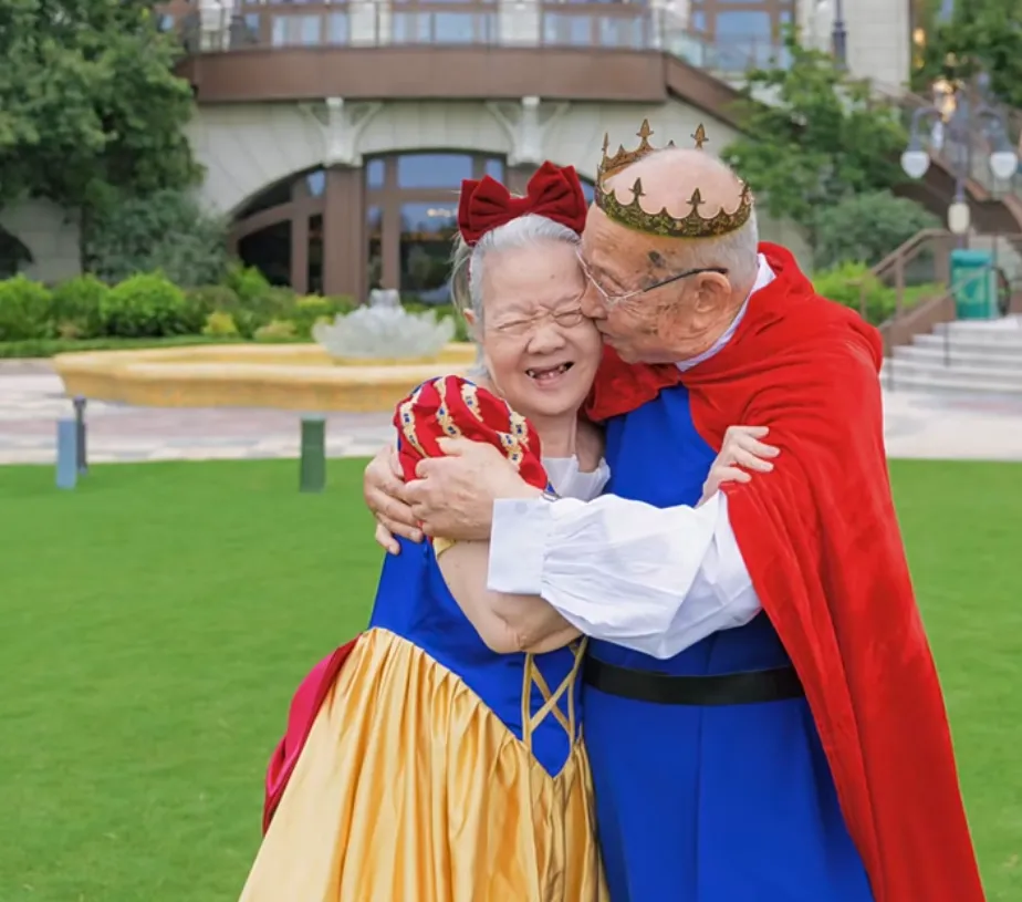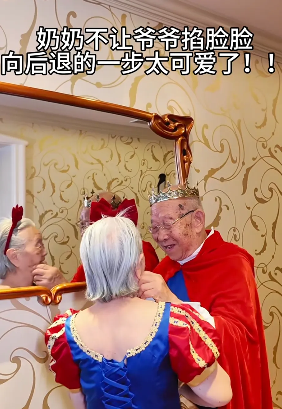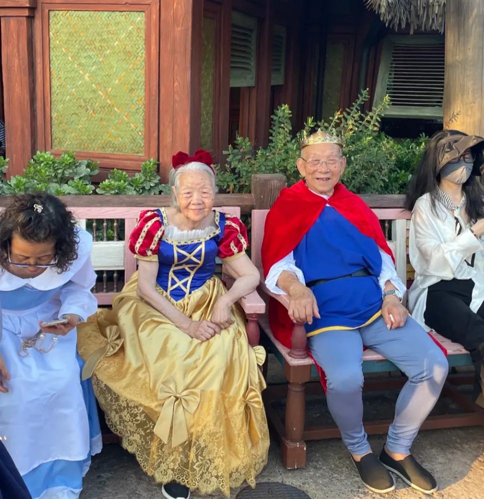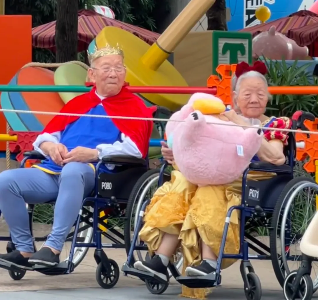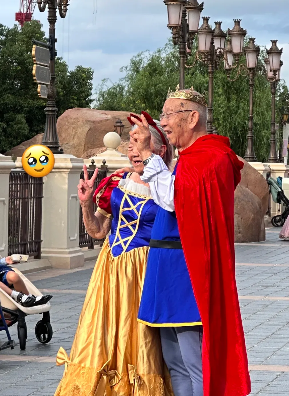 这也不是爷爷奶奶第一次扮演迪士尼角色了,去年,他们化身国王和王后,在迪士尼里牵手相视而笑的画面,就让人印象深刻。
