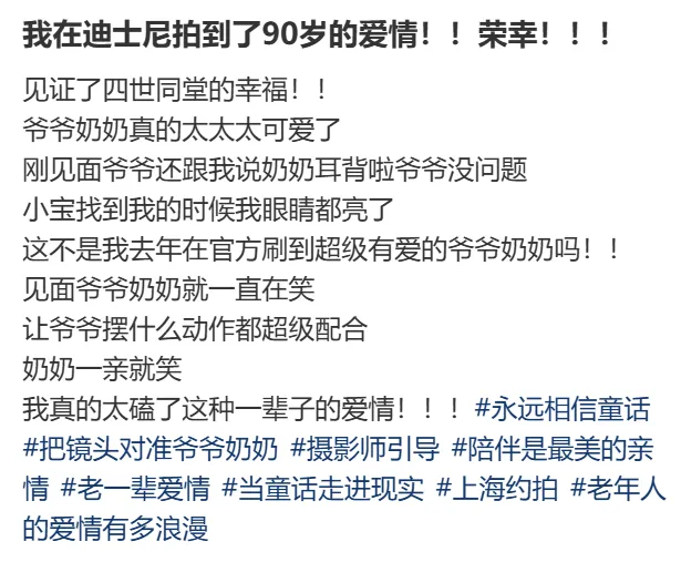 童话故事通常以“王子和公主从此幸福地生活在一起”结尾近日,不少网友在上海迪士尼拍到一对很有爱的老年夫妇不少人直呼“童话照进现实”“我看到王子公主老去的样子了”