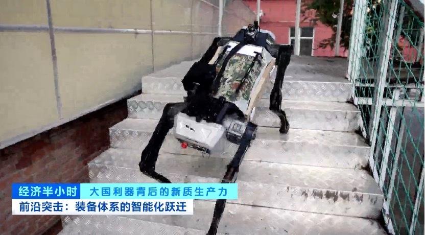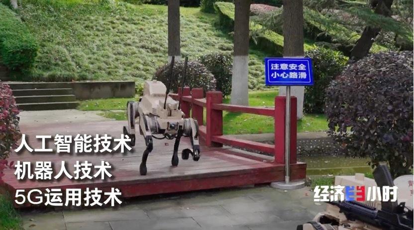 中国兵器科研人员:它可以搭载各种各样的模块,机械臂可以进行抓取、开门的一些作业。 整个的感知系统有激光雷达、多光云台、深度相机等进行编组,由一个云边端的终端控制系统去进行多条机器狗的协同作业。