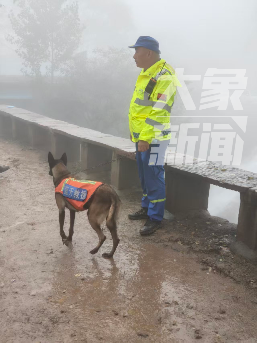 现场新乡凤泉鼎励救援队的一名救援人员告诉记者,新乡、永城、卫辉、焦作的救援队都来了,得有十几支,百来人参与救援,搜救犬也上了。但由于雨雾天气,无人机无法起飞,搜救难度太大,计划今天下午4点撤离。