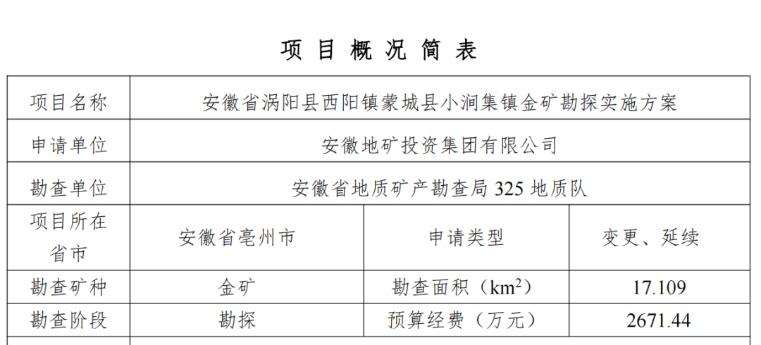 近日,安徽省自然资源厅官网发布关于安徽省涡阳县西阳镇蒙城县小涧集镇金矿勘探实施方案等3个矿产资源勘查实施方案审查结果的公示。