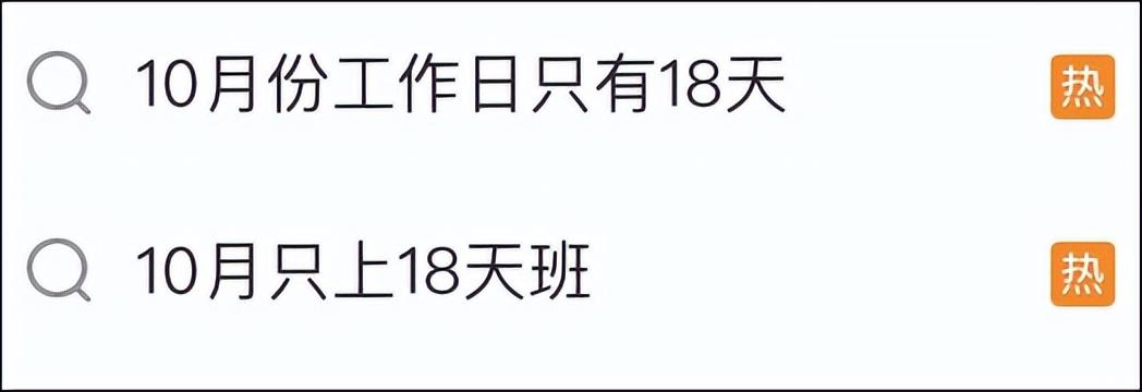 近日“10月份工作日只有18天”相关话题冲上网络热搜。