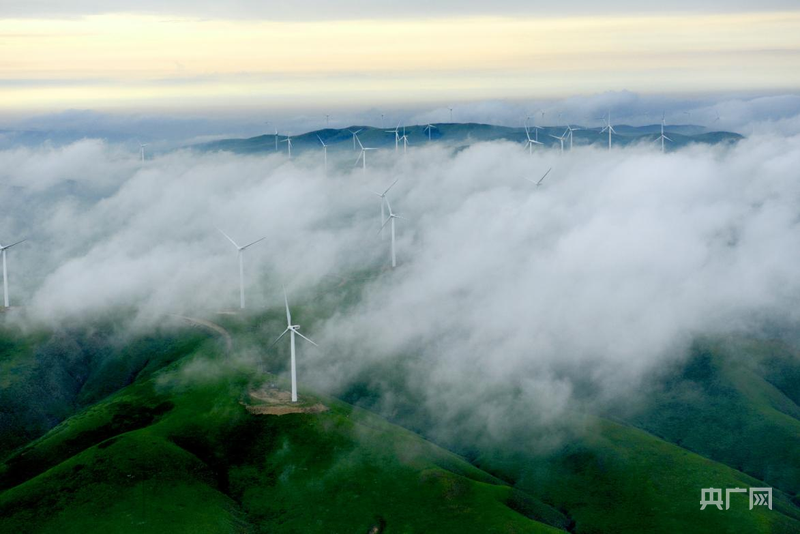 云雾缭绕中的风车(央广网发霍林郭勒市融媒体中心供图)