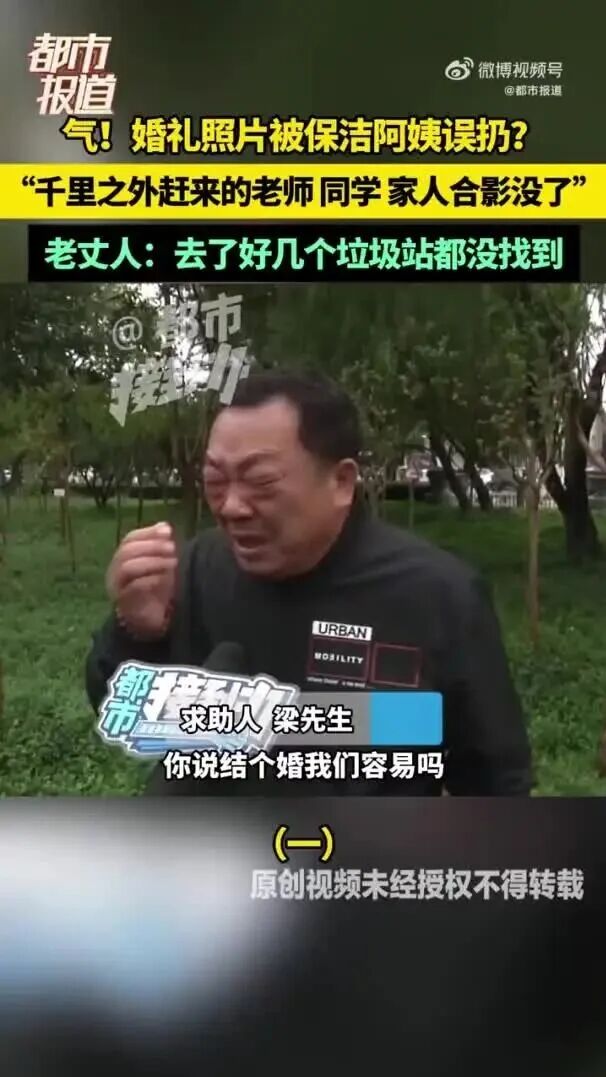 据河南广播电视台都市报道10月11日消息,来自河南濮阳的梁先生称,他儿子在当地一家酒店花费13888元举办婚礼,期间放在化妆间的近40张拍立得照片被保洁阿姨误当成垃圾清理。尽管酒店帮忙翻找了多个垃圾站,照片仍未被找到。