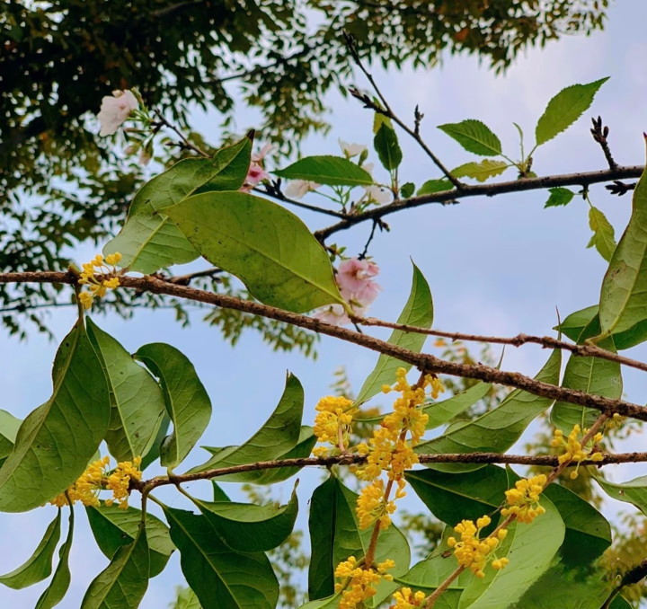 桃花和桂花同框,仿佛乱了季节。 橙友“天蝎园儿” 摄