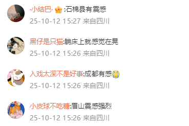 不少网友反映,四川成都、绵阳、乐山多地有震感。