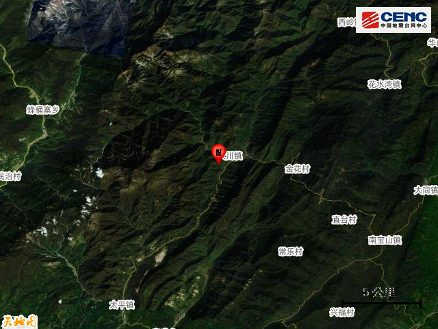 附近村镇:本次地震周边5公里内的村庄有杨开村、快乐村、韩溪沟、晓里、马河坝、快龙村、洞峡子、牛井山、皂角湾、禾麻沟,20公里内的乡镇有大川镇、太平镇、中林乡、宝盛乡、蜂桶寨乡、盐井乡、民治乡。