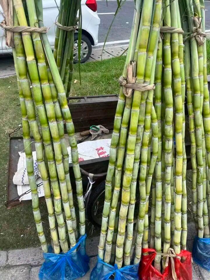 但转了一圈都没发现杭州临平本地甘蔗,相比高挑的外地甘蔗,本地甘蔗个矮、节短,相貌不太讨人喜欢,但只有吃过它的人,知道它的清甜!