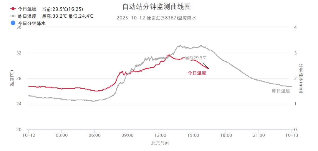 申城今天白天多云为主,云层的遮挡下,徐家汇站最高气温较昨日略有下降,最终定格在31.7度。国家站中闵行和青浦站最高33.7度并列第一。