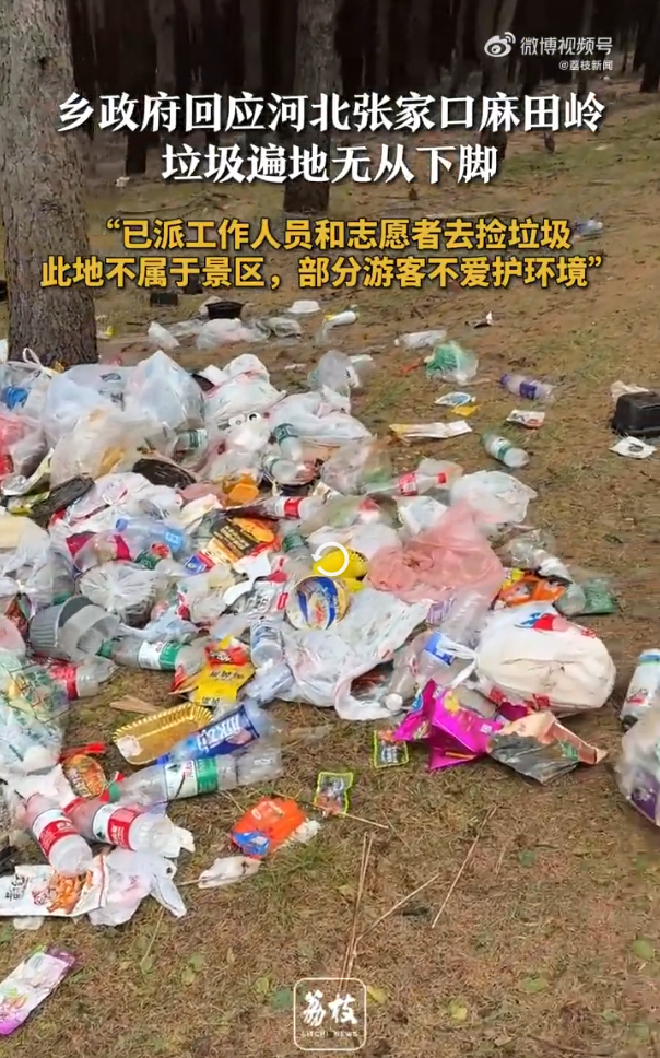 近日,有媒体和网友发布视频称,被誉为“小天山”的河北省蔚县麻田岭垃圾遍地,多到简直没地方下脚。