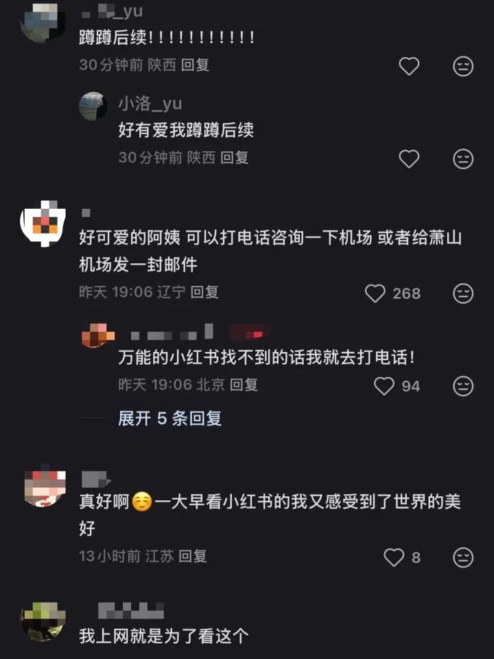 前天傍晚,刘女士发布了这则寻人帖。有网友建议,可以打电话咨询一下机场,或者给萧山机场发一封邮件……无数网友在评论区“蹲后续”。