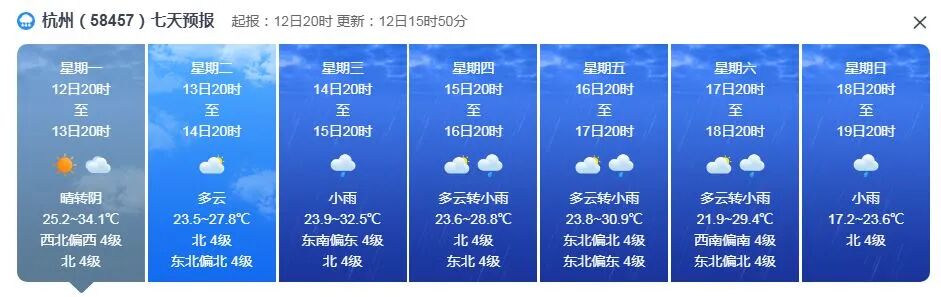 杭州明天全市气温都将比前期降下一个台阶,主城区白天最高气温28℃左右。