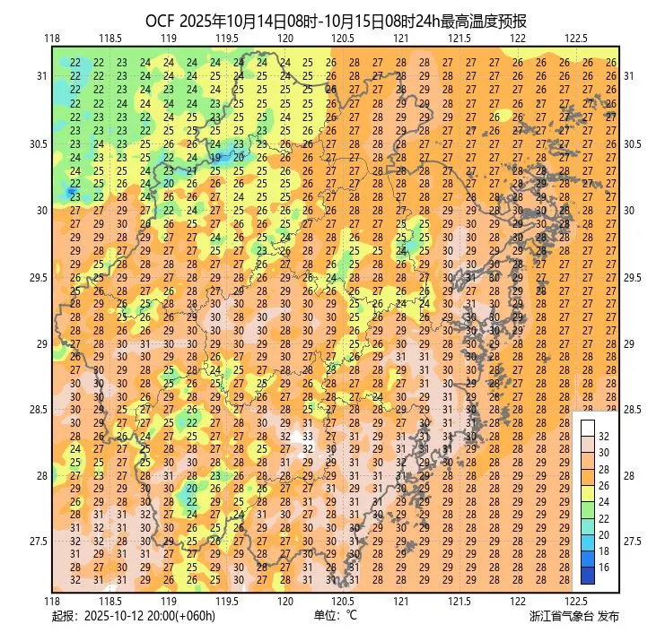 从历史资料来看,浙江最晚高温日出现在10月11日。昨天,我省又出现一大片高温,多地高温打破浙江最晚高温日纪录。不仅如此,截至今天上午11点,浙中南多地气温达到32~33℃,这样看来,这一纪录很有可能再次刷新。