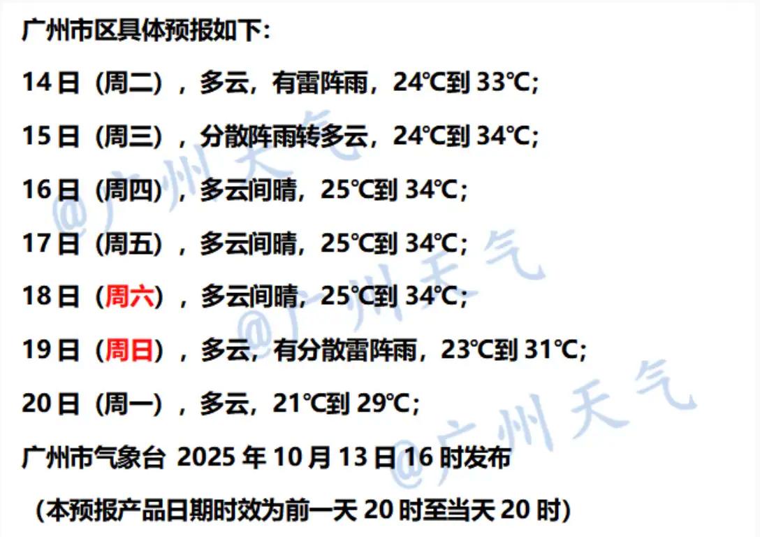 按现有数值预报结论,广州有可能在19日起的未来一周,市区最低气温降至20℃以下。