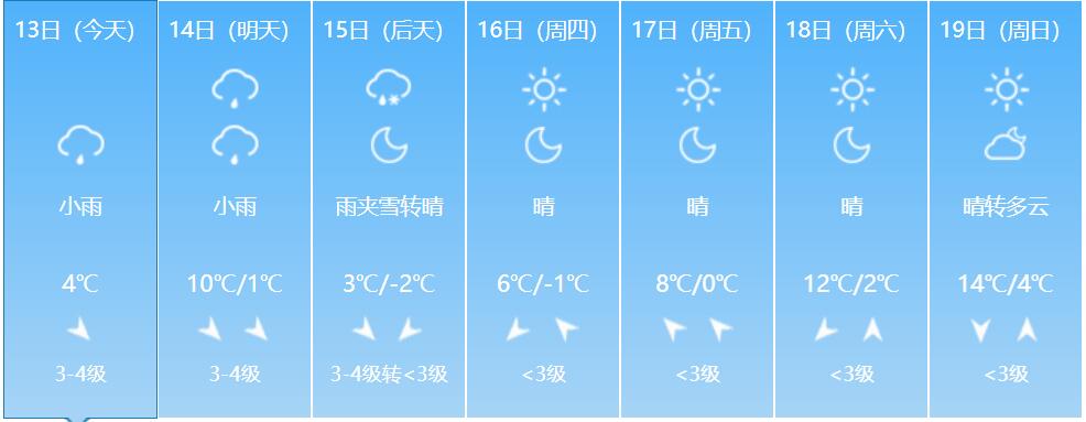 据新疆气象台预报显示,预计周一夜间至周三白天,乌市大部区域断续有小雨转雨夹雪,南郊和山区小雨转雨夹雪转小雪,局地中雪,各区气温下降5-7℃,上述区域有3-4级西北风,达坂城区小雨转雨夹雪或雪,周三白天至夜间达坂城区将出现有9级左右偏西阵风;周内其他时间各区以晴好天气为主。