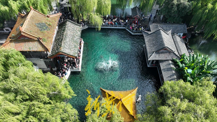 10月14日一早,天下第一泉风景名胜区再次传来好消息,趵突泉实时数据达到30.29米。资料显示,2022年10月11日,趵突泉地下水位曾涨至30.27米,创下1966年以来最高地下水位纪录。而今趵突泉水位已打破这一纪录,创造了新的历史。