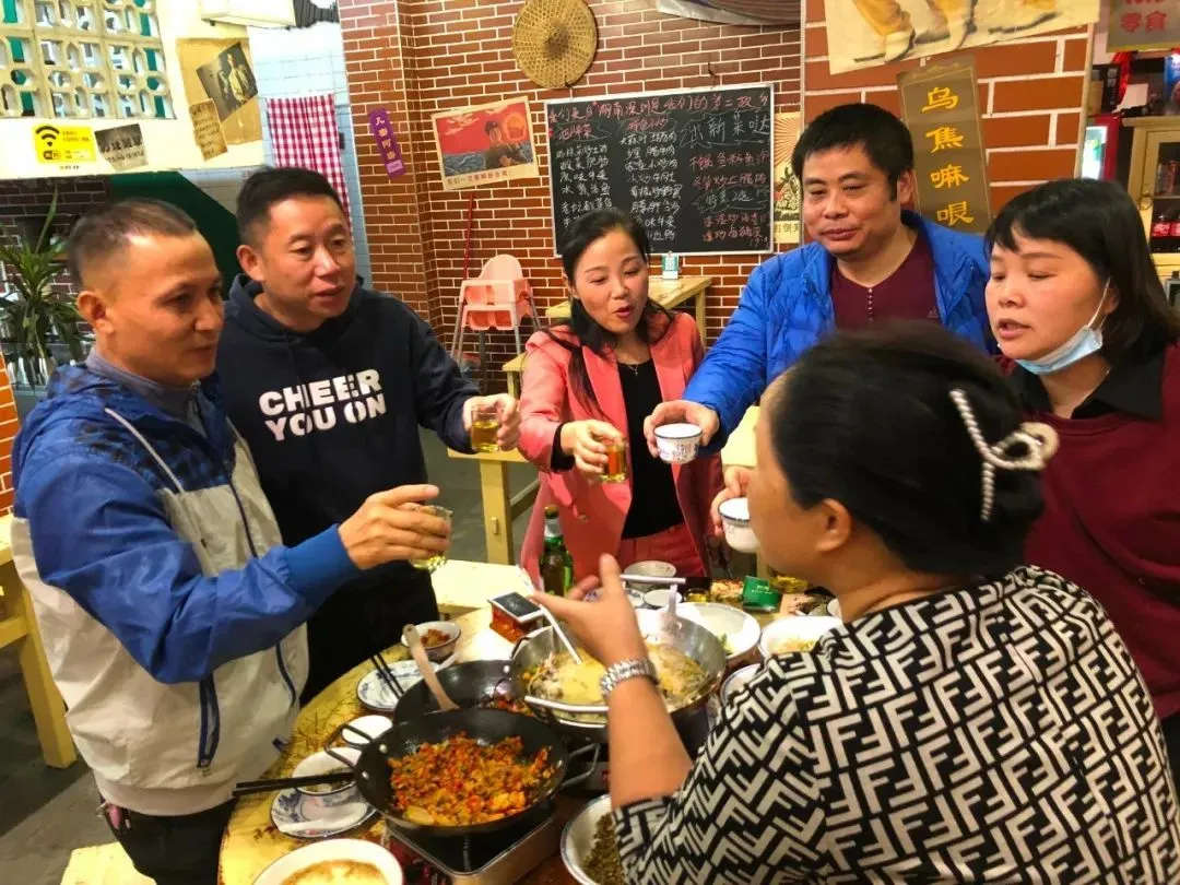 ▲2021年12月孙海洋寻子成功后,部分寻子家长聚餐。右一深红色衣服为邓惠东