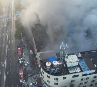 10月14日上午7时,有网友发布视频称山东省胶州东路向阳商贸市场店铺起火。