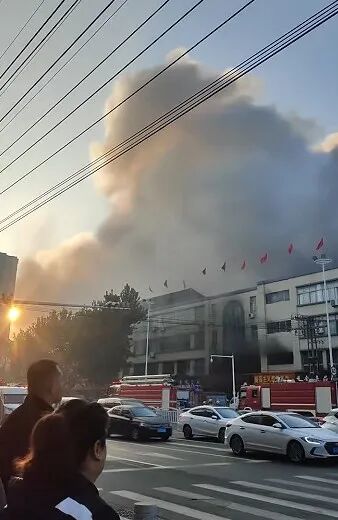 网友表示,现场浓烟滚滚,已被拉上警戒线,多辆消防车正在全力以赴进行扑救。