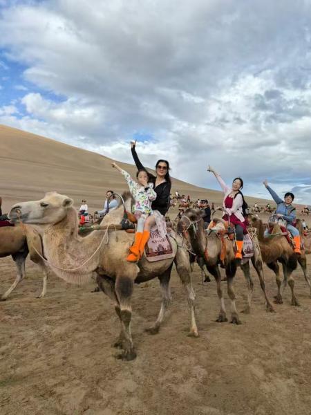 今年暑假雯雯一家在敦煌鸣沙山游玩。受访者供图