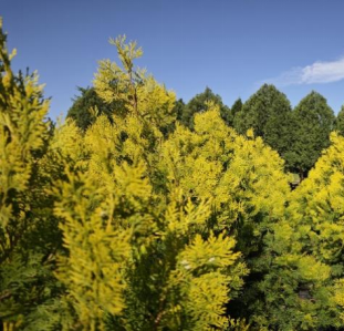 少花粉彩化侧柏新品种“金冠1号”(春季)。受访者供图