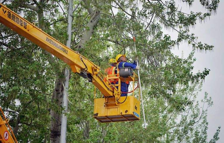 工作人员为杨树修剪树枝。资料图片/新京报记者 薛珺 摄