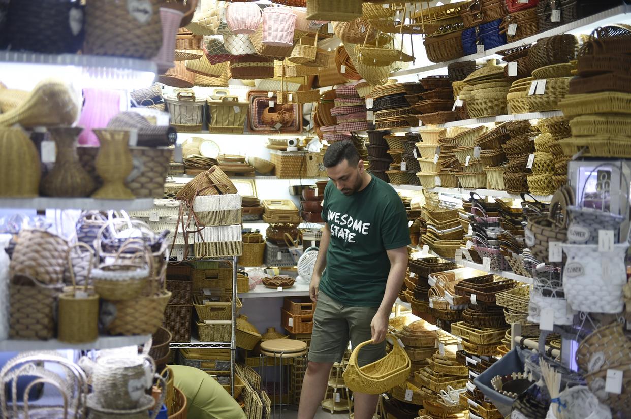 10月14日,顾客在义乌国际商贸城一区市场的商铺内选购商品。新华社记者 鲁鹏 摄