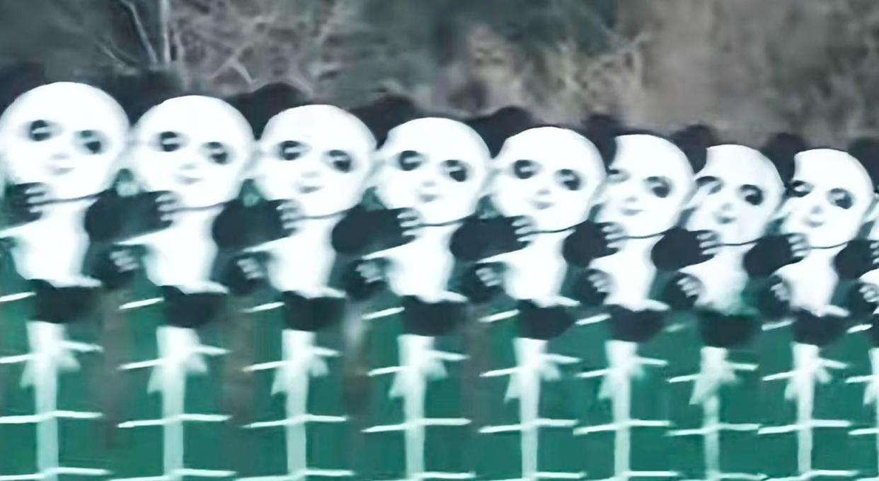 “当时觉得拍起好耍,没有想到这段视频火了!”视频发布者黄女士介绍,当天他们从九寨沟返回成都的路上,在王朗段拍下这段视频,这些熊猫图案装置设置在高速隔离带上。“太密集了,感觉有点鬼畜”。