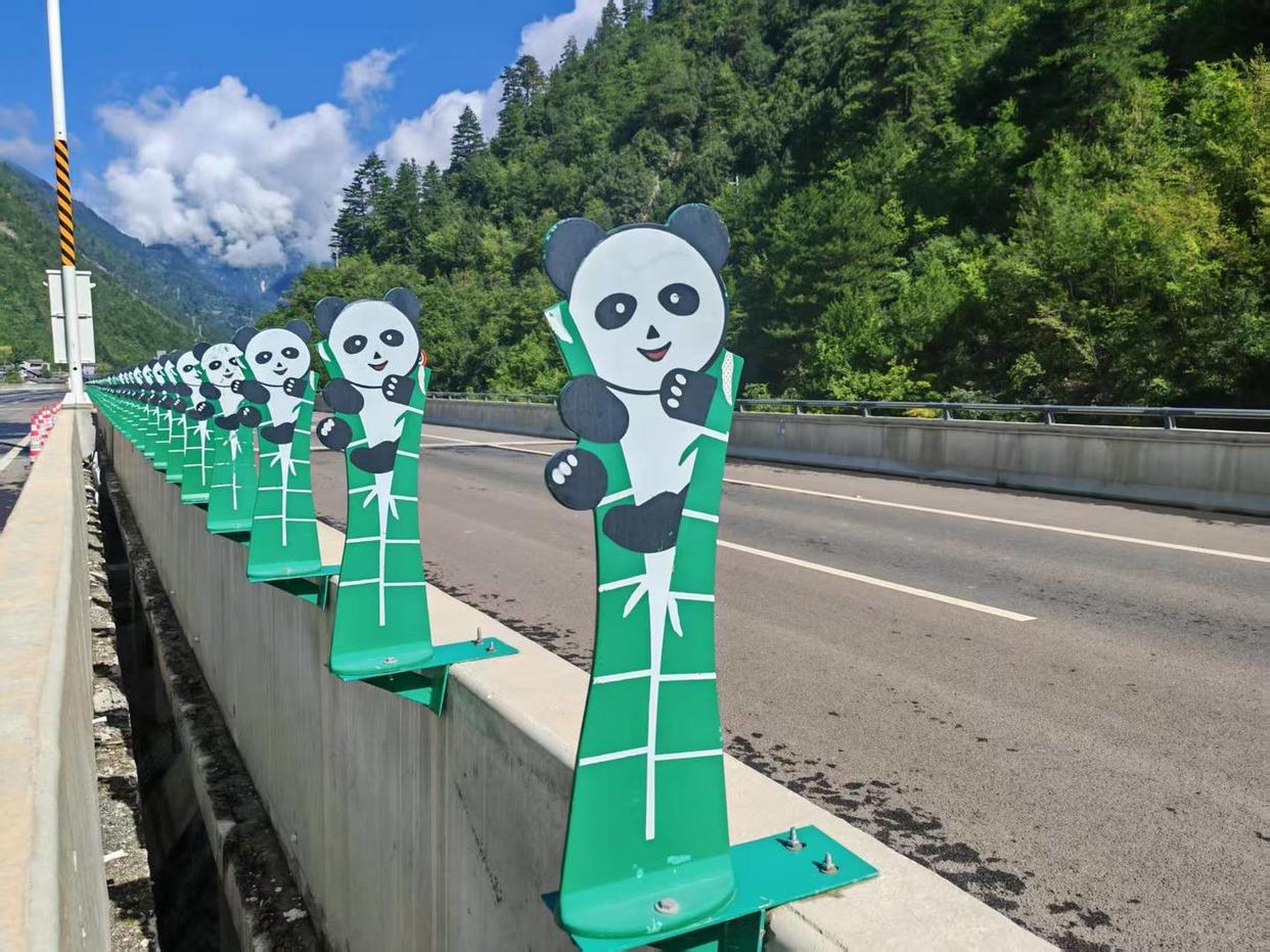 ▲九绵高速沿途布设的“熊猫抱竹”造型的防眩板
