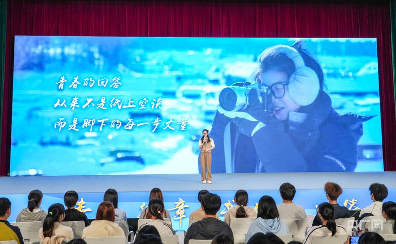 余典进行《行走的青春》主题分享(央广网记者邓子依 摄)