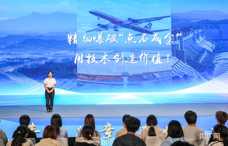 在川藏铁路,团队驻扎海拔4000米高原,研发“机械化装药技术”,将单次爆破进尺从2.6米提升至5.1米;在鄂州花湖机场,他们用“台阶爆破”将三座大山夷为平地,却让周边居民楼的玻璃“一丝未动”;在汶川地震等灾害中,他们用爆破技术开辟生命通道,成为“危难时刻的生命守护者”。演讲中,张淑童与她的导师――精细爆破全国重点实验室谢全民教授共同讲述了“精细爆破”如何支撑起国家重大工程,赢得现场学子一片掌声。
