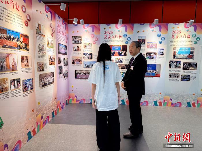 10月16日,2025年“未来之星”和“范长江行动”暑期活动分享会在香港举行。图为现场嘉宾参观活动照片。 罗英杰 摄
