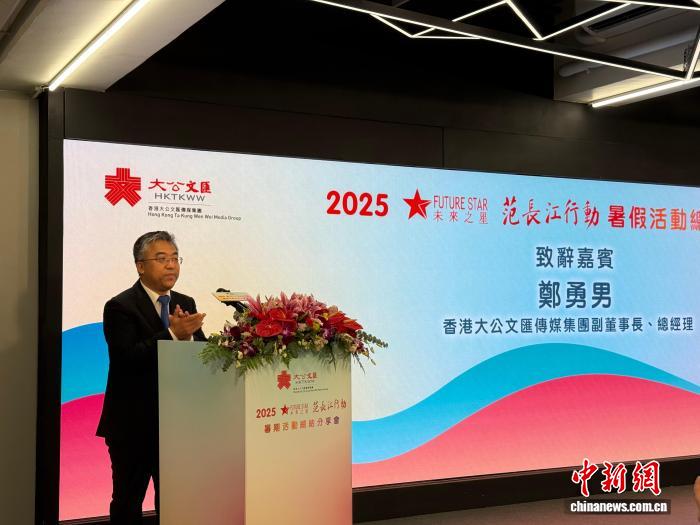 10月16日,2025年“未来之星”和“范长江行动”暑期活动分享会在香港举行。图为香港大公文汇传媒集团副董事长、总经理郑勇男致辞。 罗英杰 摄