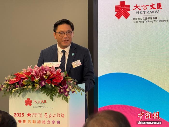 10月16日,2025年“未来之星”和“范长江行动”暑期活动分享会在香港举行。图为香港特区政府民政及青年事务局副局长梁宏正致辞。 罗英杰 摄