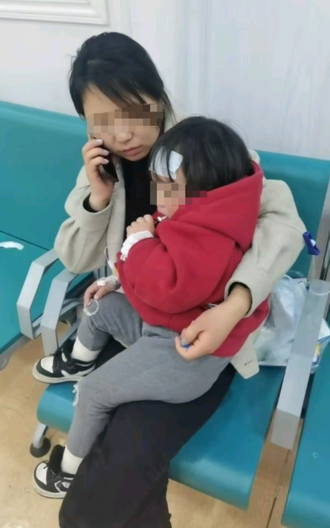 △小张生前陪女儿看病。受访者提供。
