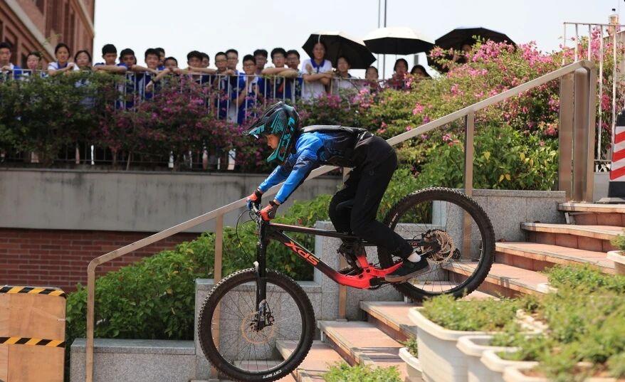 今年5月,冼嘉朗凭借优异的表现,在亚洲山地自行车锦标赛上创下中国在该项目上的历史最佳成绩。从亚锦赛凯旋后,在学校以及车队的支持下,冼嘉朗自发组织,在龙津中学校内举办了一场“校园自行车速降嘉年华”。这一举动,引发众多速降运动爱好者关注,也让更多同学了解到“速降”这一运动。