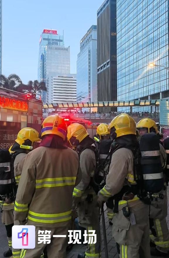 第一现场驻香港记者了解到,下午5点50分,在港铁中环站A出口外,可以看到有多量消防车、警车、救护车在现场,有多名穿戴好救援设备的消防员待命。