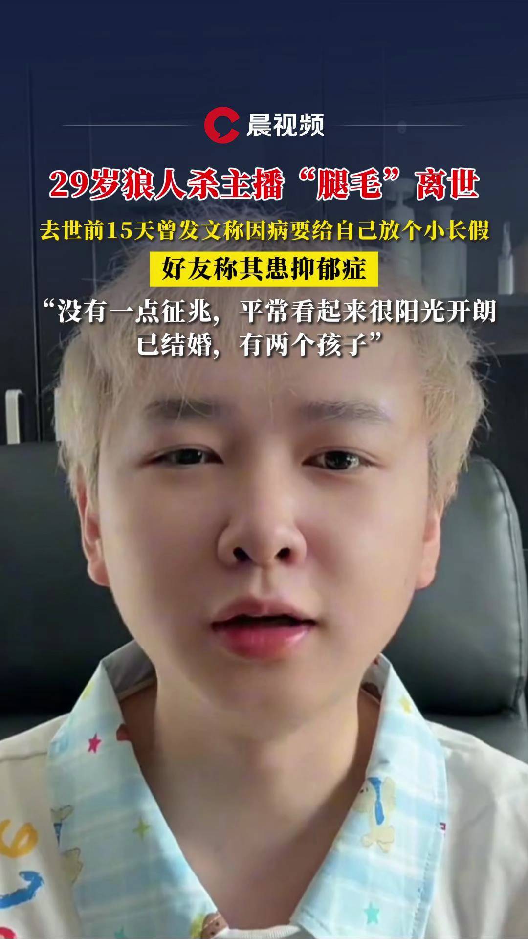 10月18日,据大象新闻报道知名狼人杀主播“腿毛”去世,年仅29岁。