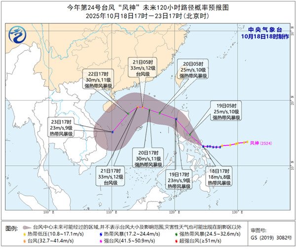 另外,今年第24号台风“风神”已于今天凌晨生成。预计“风神”21日前受带状副热带高压的引导,以西北行路径为主。明天白天将在菲律宾吕宋岛东部沿海登陆,以后穿过吕宋岛,明天下午到夜间进入南海东部海面。