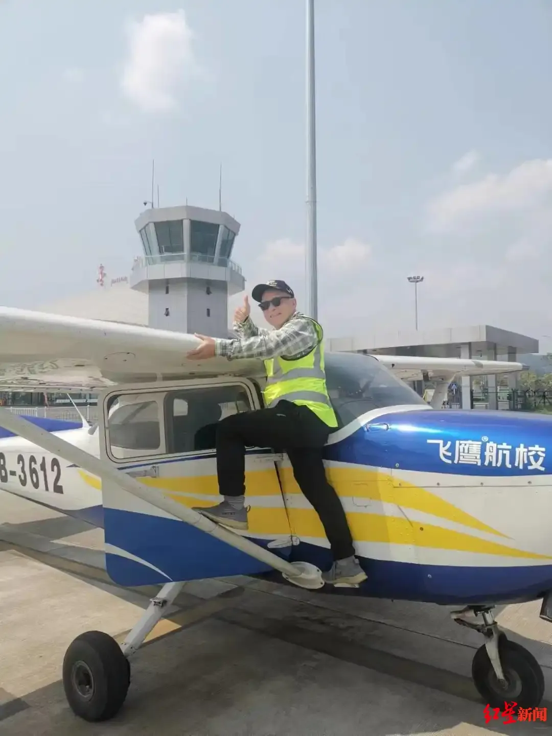 郑镇炎与成都也有着不解之缘。2024年1月至4月,他到成都淮州机场飞鹰航校学习驾驶飞机,经过70多小时的学习,成功实现了自己的飞行梦。彼时,航校教练感慨道:“这是我们航校接收过的年龄最大的学员,他太酷了!”
