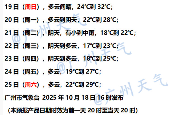 据央视新闻,华南的降温从今天开始,到下周三前后,福建、广东、广西、海南最低气温将降至20℃以下。据@广东天气,预计,19-22日,受“风神”和中等强度冷空气共同影响,广东省气温自北向南逐渐下降,过程降温幅度约6~10℃。据@广州天气,19日,新阿冷初来乍到,风力有所加大,气温会降一点,但天况还是比较好的,白天甚至还会有3字头,所以还不需要加衣服。