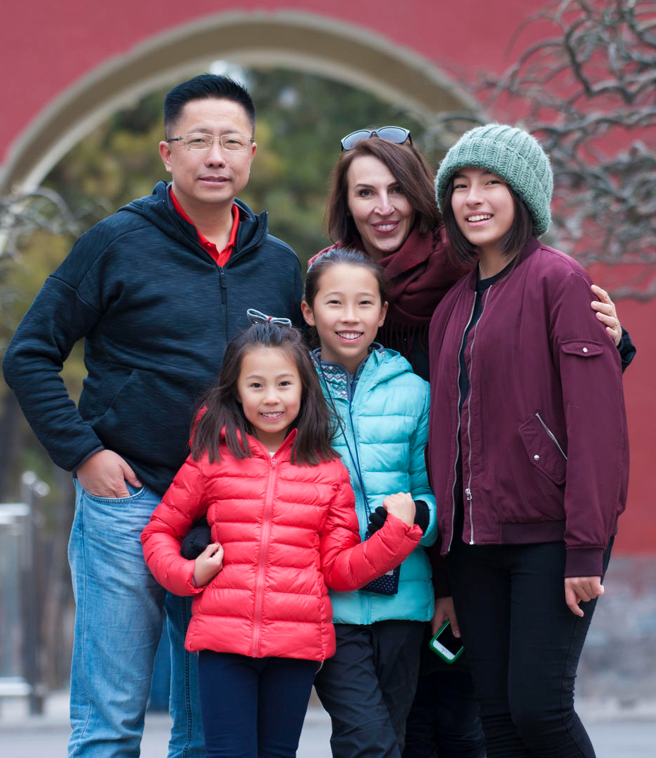 ▲李阳和Kim及三个女儿的合照 受访者供图