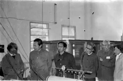 杨振宁(左二)参观中大物理系。(图来自中山大学档案馆微信公众号)